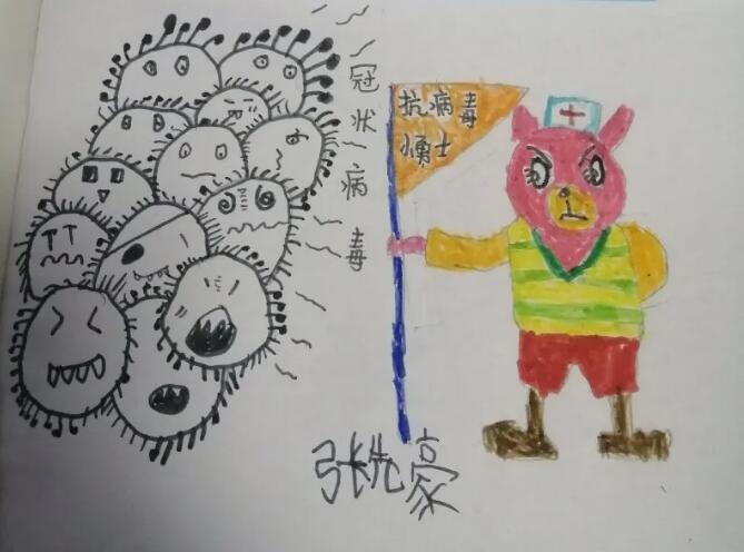我们一至三年级小朋友们以培养动手能力和情趣运动为主,开展了整理书包、系鞋带、折纸飞机或利用纸壳制作作品、为抗疫英雄画一幅画、跳绳等活动。