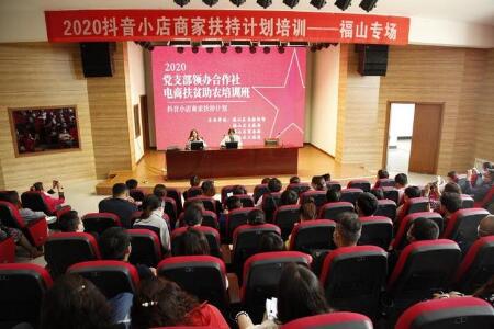 水母网6月9日讯(YMG全媒体记者 姜晓 通讯员 王宁 摄影报道)6月2日上午, 由区委组织部、区商务局、区文旅局及区工信局共同举办的2020党支部领办合作社电商扶贫助农培训班——抖音小店商家扶持计划福山专场培训,在区党群服务中心举办。区商务局积极动员,共有30余家党支部领办合作社及其成员,相关企业和广大电商爱好者共计150余人参与了培训, 涵盖了生鲜、家纺、服装、日用品、餐饮、文旅等诸多行业。