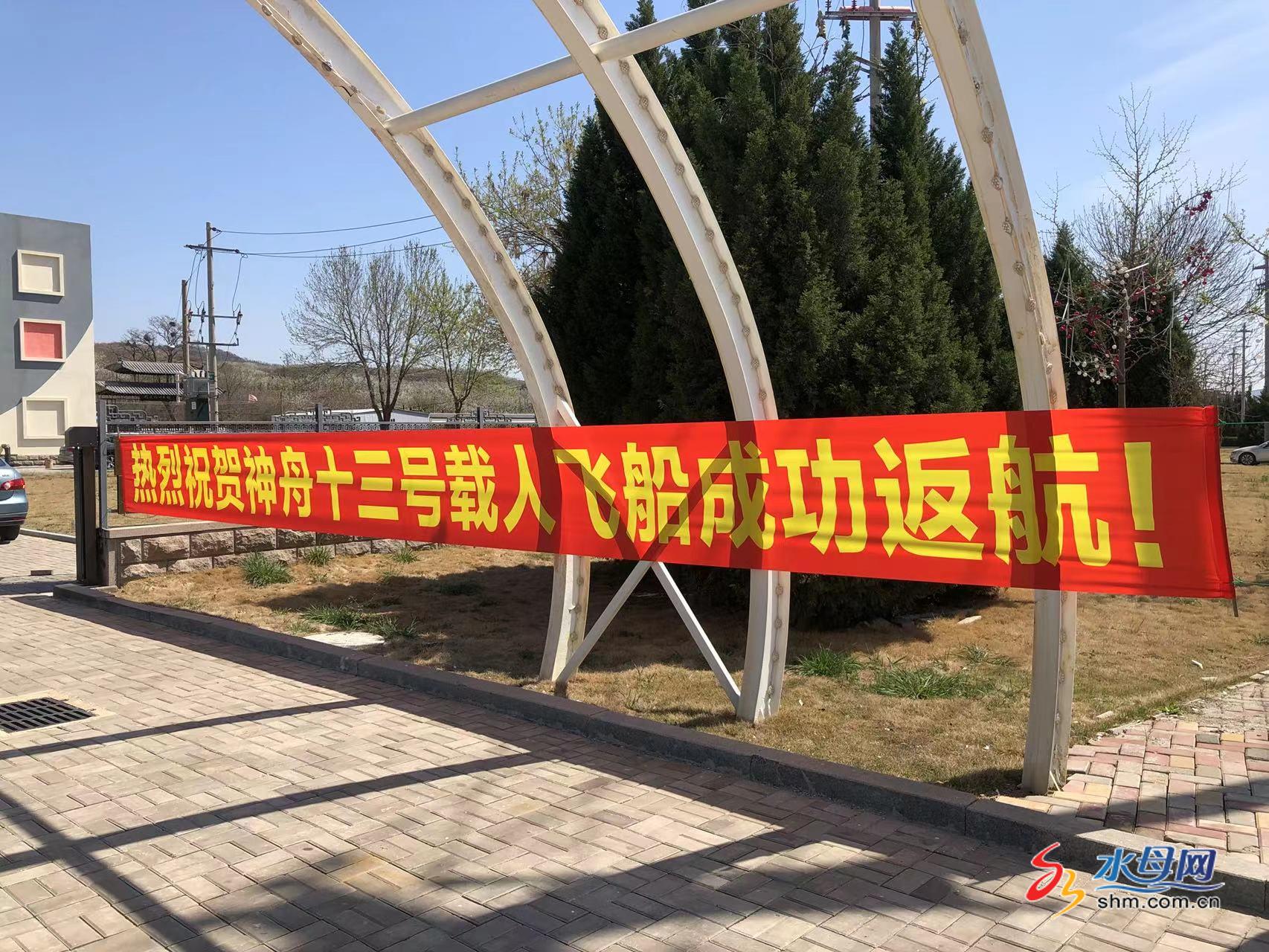水母网4月16日讯(记者 陈玉凝)4月16日一早,在航天英雄王亚平家乡烟台福山区张格庄镇张格庄村,村民们早早的来到了村委会前的小院里,一起收看神舟十三号载人飞船返回舱返回实况直播,翘首企盼航天英雄们平安归来。道路两旁悬挂的欢迎航天英雄回家的横幅装点了这个朴实的小村子。